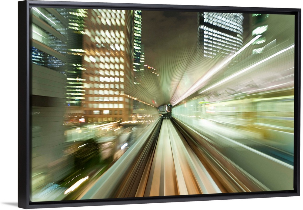 <p>Asia, Japan, Honshu, Tokyo, POV blurred motion of Tokyo buildings from a moving train</p>