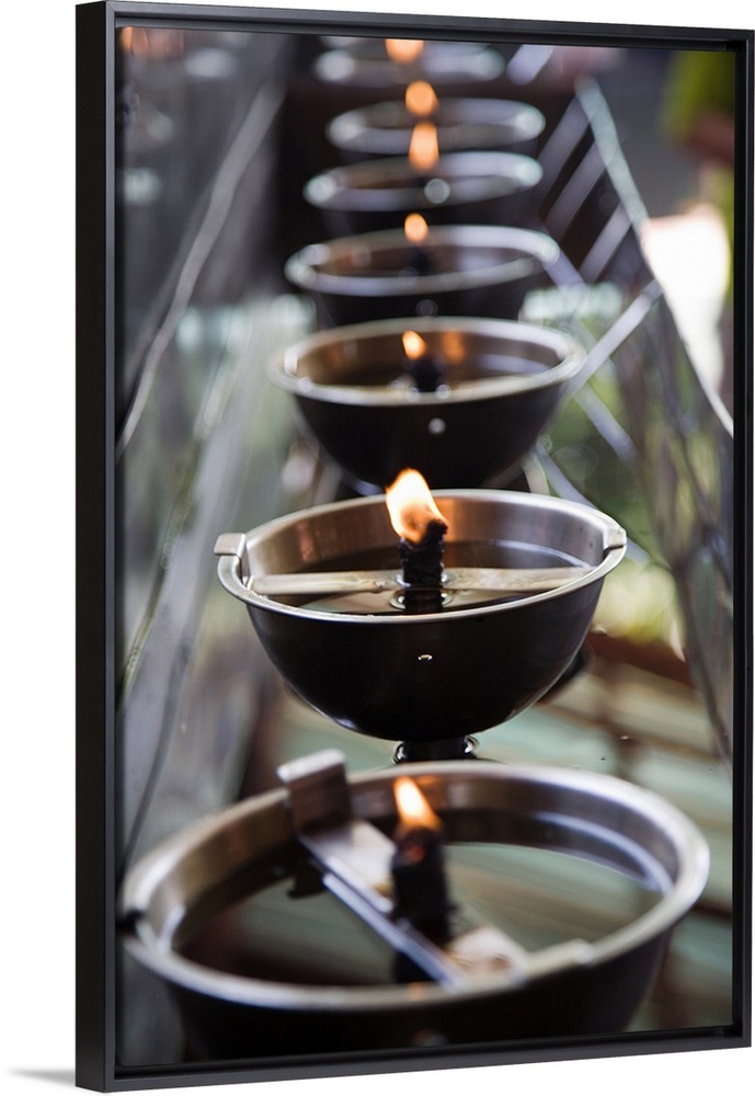 <p>Thailand, Thailand Central, Ayutthaya, Wat Yai Chai Mongkhon, ritual torches</p>