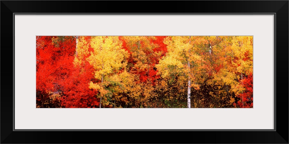 <p>A landscape panoramic photograph of autumn foliage in the American West.</p>