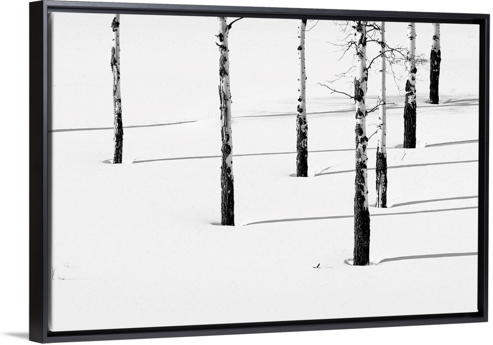 <p>Aspen trees (Populas tremuloides) casting their shadows on the pristine snow, Yellowstone National Park United States of America</p>