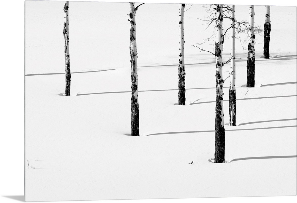 <p>Aspen trees (Populas tremuloides) casting their shadows on the pristine snow, Yellowstone National Park United States of America</p>