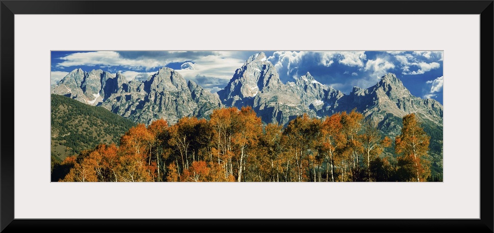 <p>Aspen trees in a forest, Teton Range, Grand Teton National Park, Wyoming, USA</p>
