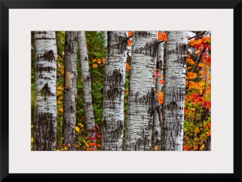 <p>Aspen Trees Surrounded By Colourful Autumn Leaves In Algonquin Provincial Park; Ontario Canada</p>