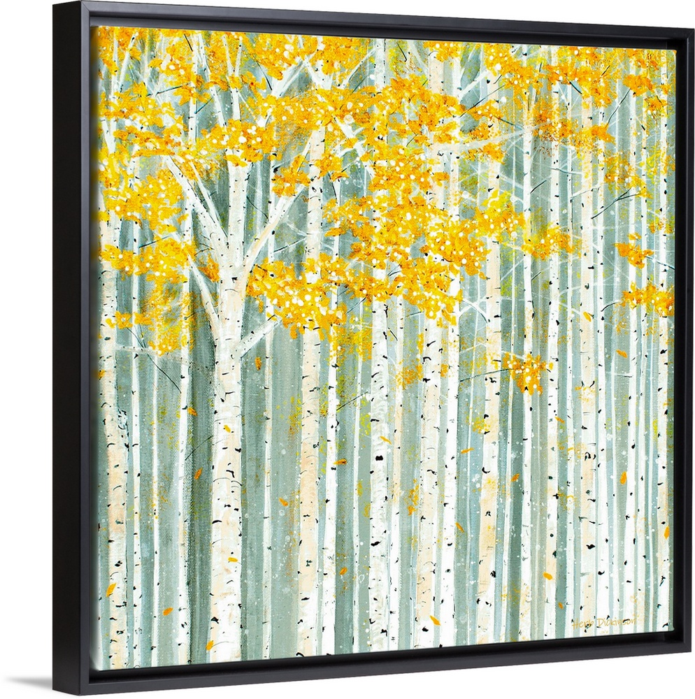 <p>Square painting covered in Aspen trees with yellow Autumn leaves.</p>