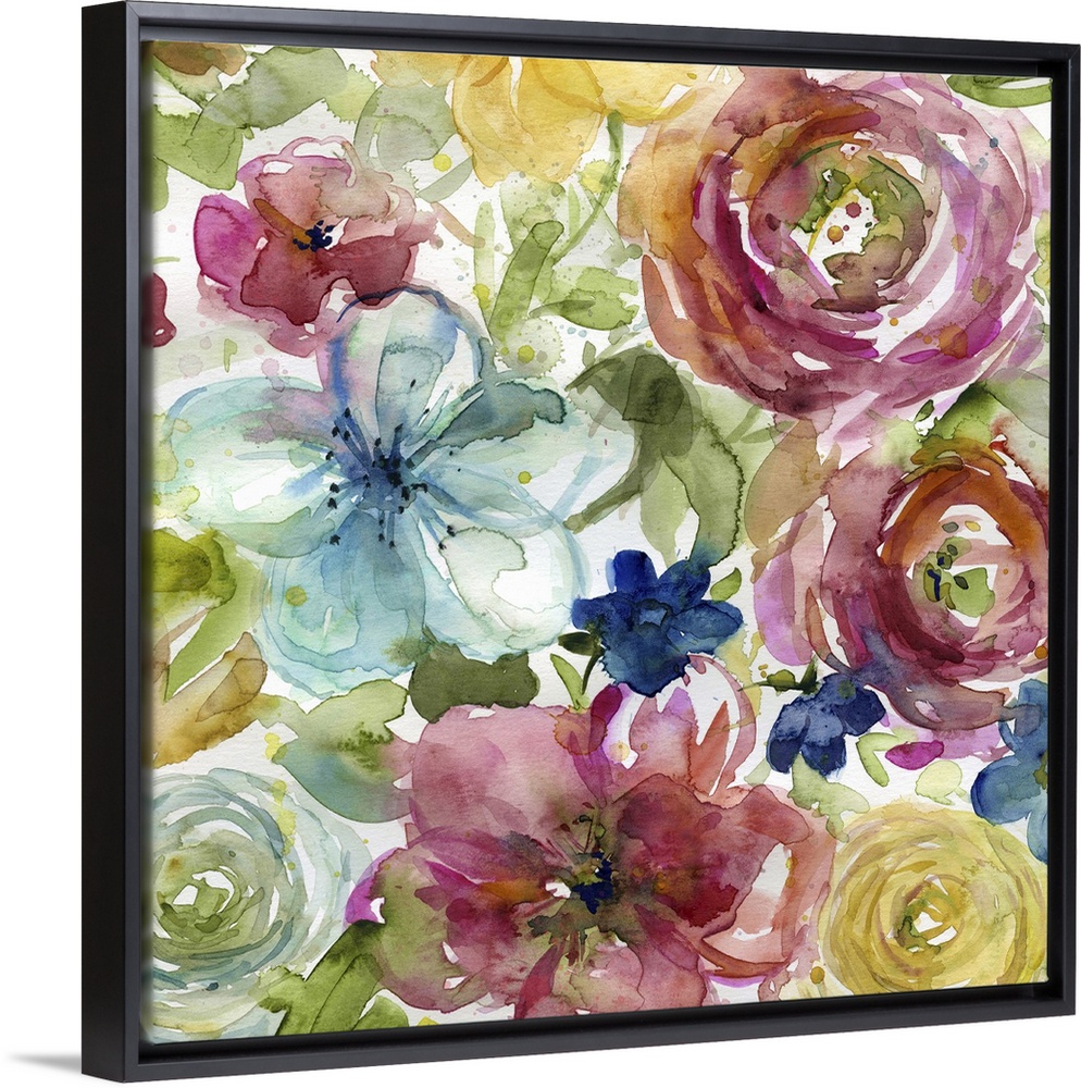 <p>Fine art watercolor painting of an assorted bouquet of flowers in bright colors by Elizabeth Franklin.</p>