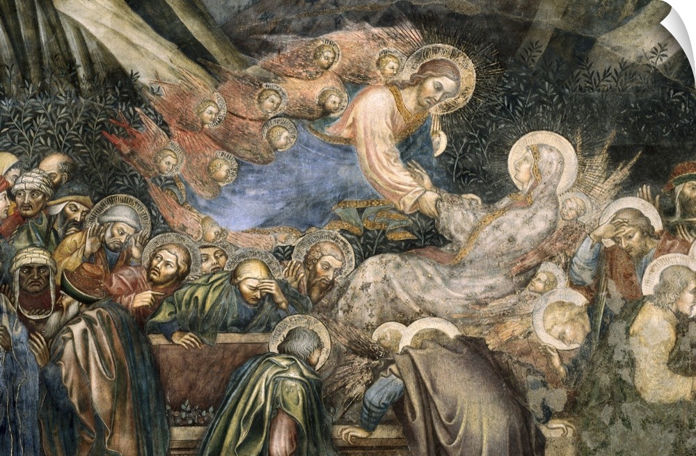 <p>TADDEO di BARTOLO (1362-1422). The Assumption of Mary. 1406-1408. ITALY. Siena. Public Palace. Christ is given the Virgin's soul. Located in the north wall of Cappella dei Signori. Renaissance art. Trecento. Fresco. -</p>
