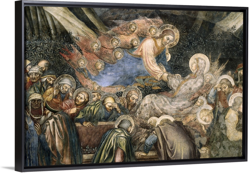 <p>TADDEO di BARTOLO (1362-1422). The Assumption of Mary. 1406-1408. ITALY. Siena. Public Palace. Christ is given the Virgin's soul. Located in the north wall of Cappella dei Signori. Renaissance art. Trecento. Fresco. -</p>