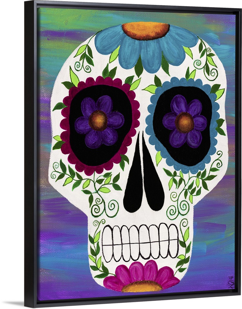 Kerri Ambrosino Art Blue Wall Art Decorative Art Holidays Dia de los Muertos Painting Purple Wall Art Skulls