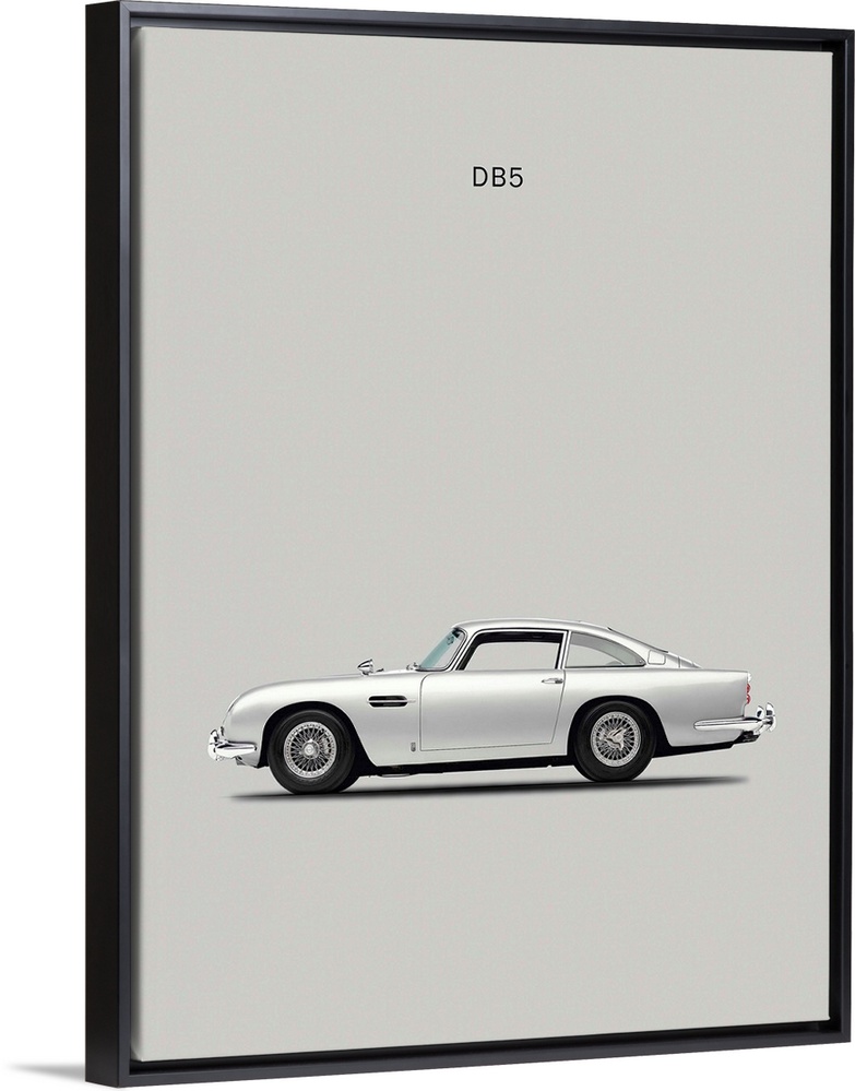 <p>Photograph of a silver Aston DB5 1965 printed on a silver background.</p>
