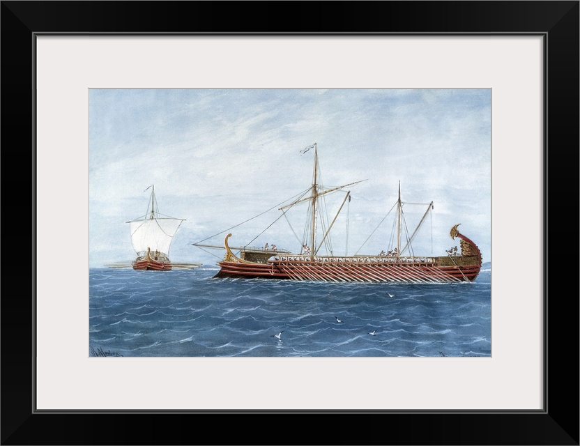 <p>MONLEON Y TORRES, Rafael (1835-1900). History of the navigation. Triremes of the athenian navy in time of Pericles (5th century B.C.). Watercolour. SPAIN. Madrid. Navy Museum. -</p>