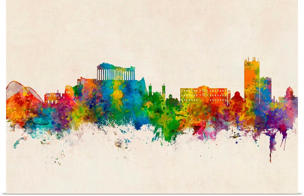 <p>Watercolor art print of the skyline of Athens, Greece.</p>