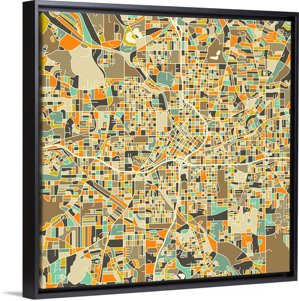 <p>Colorfully illustrated aerial street map of Atlanta, Georgia on a square background.</p>