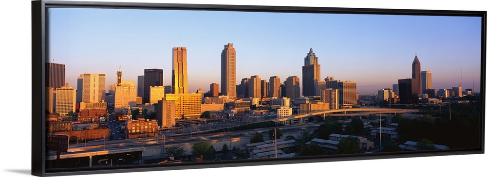<p>Large, panoramic photograph of the Atlanta, Georgia skyline at sunrise.</p>