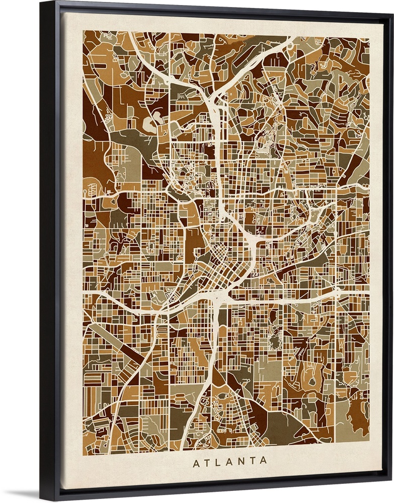 <p>Brown toned city street map artwork of Atlanta.</p>