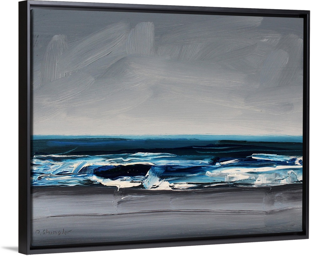 <p>Contemporary painting of a view starring out at the sea from a beach.</p>