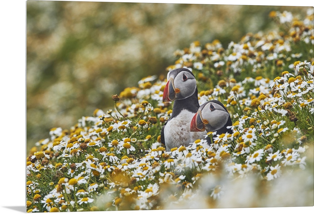 <p>Atlantic Puffin (Fratercula arctica), on Skomer Island in July, a nature reserve off the coast of Pembrokeshire, Wales, United Kingdom, Europe</p>