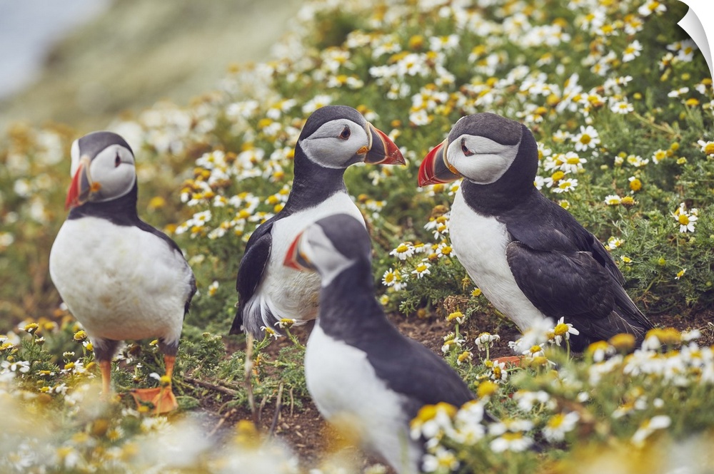 <p>Atlantic Puffin (Fratercula arctica), on Skomer Island in July, a nature reserve off the coast of Pembrokeshire, Wales, United Kingdom, Europe</p>