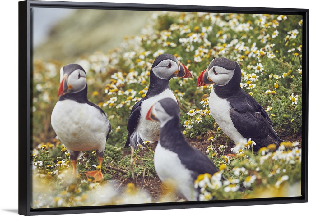 <p>Atlantic Puffin (Fratercula arctica), on Skomer Island in July, a nature reserve off the coast of Pembrokeshire, Wales, United Kingdom, Europe</p>
