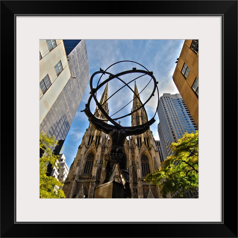 <p>Image of the Atlas Statue with St. Patrick's Cathedral in the background, Manhattan, New York City.</p>