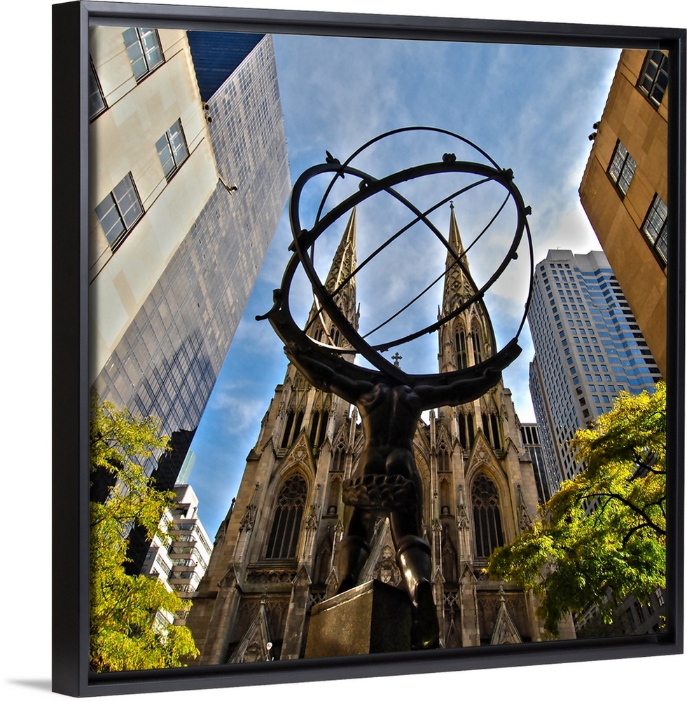 <p>Image of the Atlas Statue with St. Patrick's Cathedral in the background, Manhattan, New York City.</p>