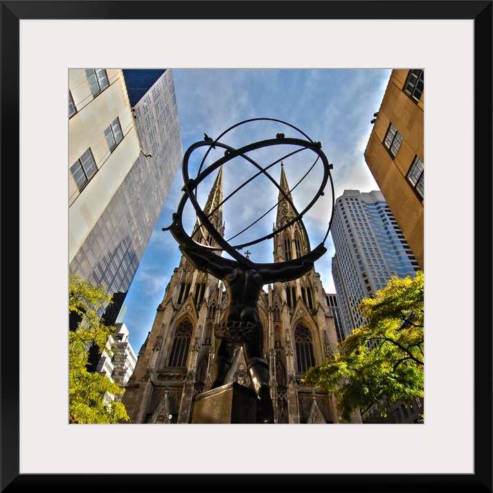 <p>Image of the Atlas Statue with St. Patrick's Cathedral in the background, Manhattan, New York City.</p>