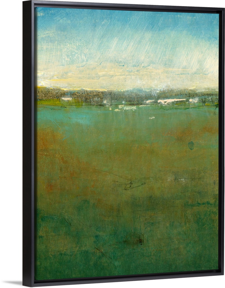 <p>Abstract artwork of a massive field with a cloudy sky painted above it.</p>