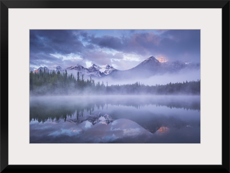 <p>Atmospheric misty sunrise in Banff National Park in the Canadian Rockies, Alberta, Canada, Autumn, September, 2016. Alberta, Canada.</p>