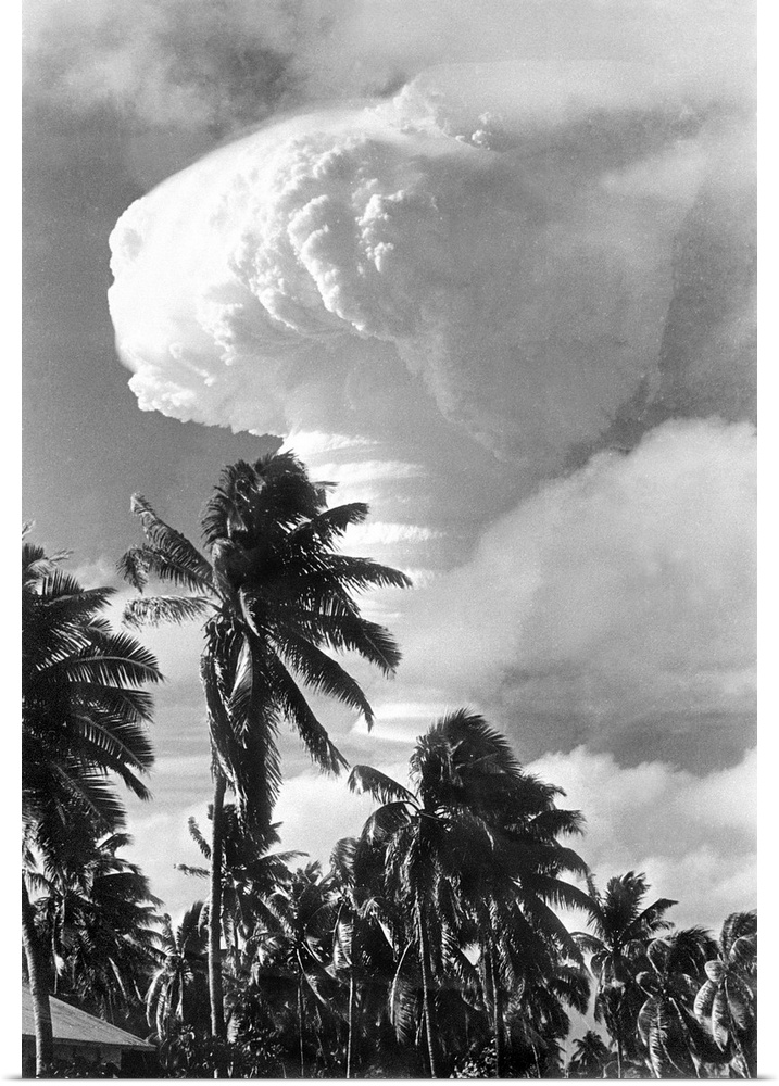 <p>Atomic bomb test, Kiritimati, 1962. The US conducted a series of 31 atom bomb tests in 1962 under the codename Operation Dominic. This mushroom cloud is from one of the 24 tests carried out at Kiritimati (Christmas Island) in the central Pacific Ocean. These tests were carried out between April and July of that year. These tests were among the last atmospheric tests carried out by the USA, with the Limited Test Ban Treaty being ratified in 1963.</p>