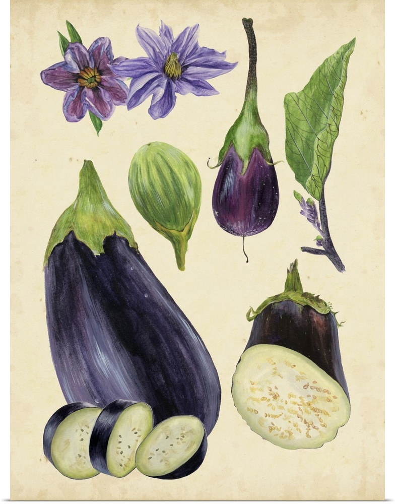 <p>This vintage, charming contemporary artwork features the artistic studies and details of an eggplant.</p>