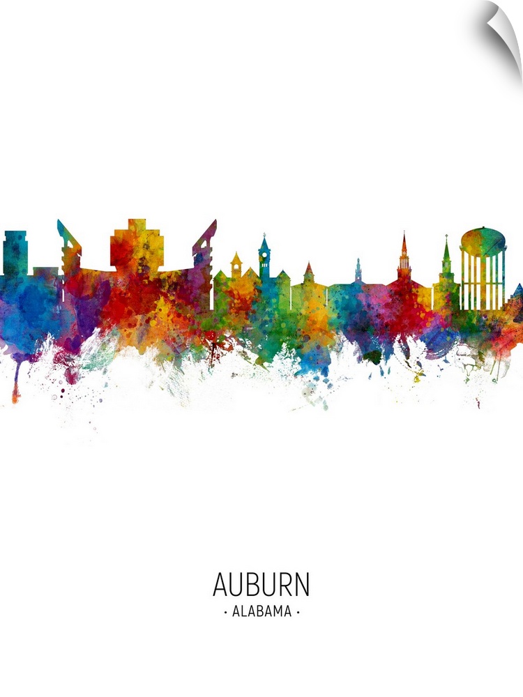<p>Watercolor art print of the skyline of Auburn, Alabama</p>
