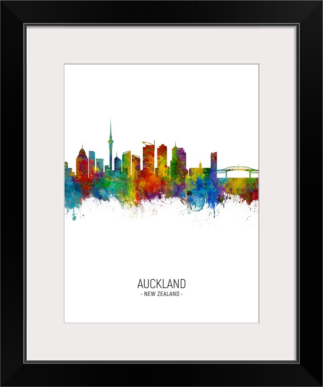 <p>Watercolor art print of the skyline of Auckland, New Zealand</p>