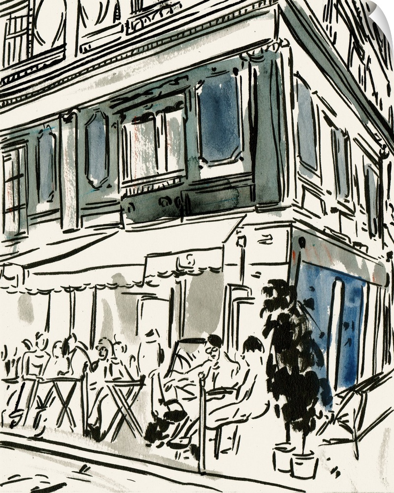 Architecture Art Contemporary and Modern Black and White Wall Art Cafe Cityscapes Decorative Art Illustrations Painting Melissa Wang Watercolor