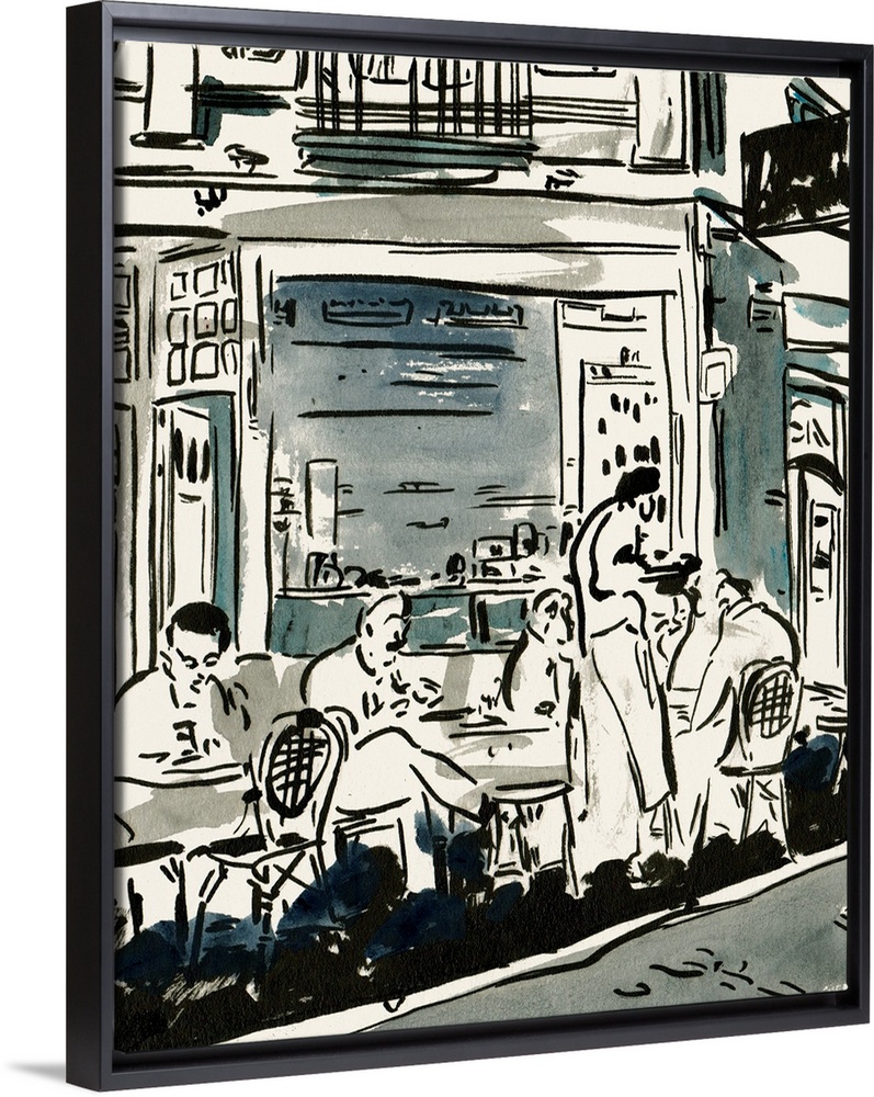 Art Black and White Wall Art Cafe Cityscapes Decorative Art Illustrations Painting People Melissa Wang Watercolor