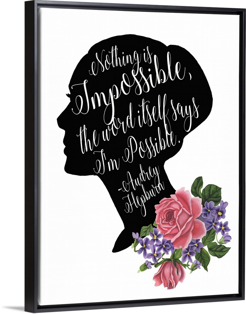 <p>Inspirational sentiment by Audrey Hepburn handwritten in a profile silhouette.</p>