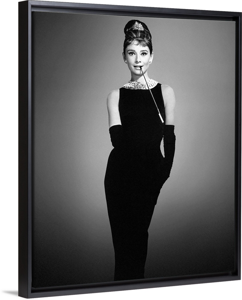 <p>Audrey Hepburn in her classic "Breakfast at Tiffany's" outfit on a soft background.</p>