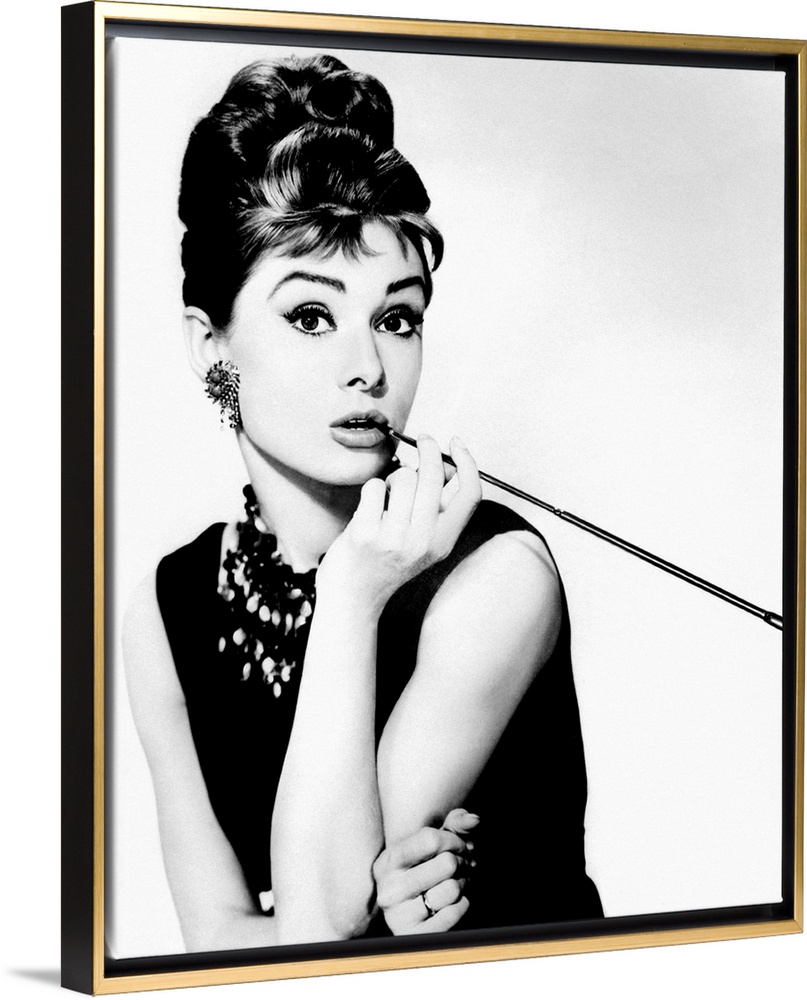 <p>This wall art is a portrait photograph of the Hollywood Icon character Holly Golightly in her signature black dress, jewelry, cigarette holder, and wing tip eye liner.</p>