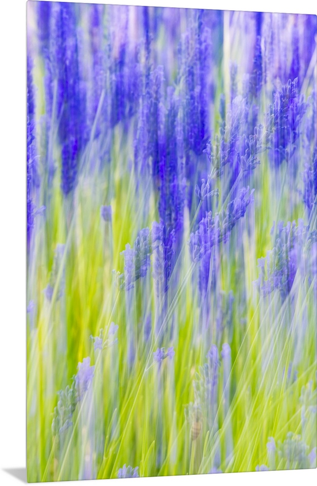 <p>Aurel, Vaucluse, Alpes-Cote d'Azur, France. Motion blur view of a lavender field.</p>