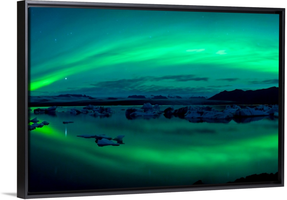 <p>Aurora Borealis or Northern Lights over the Jokulsarlon Lagoon, Iceland</p>
