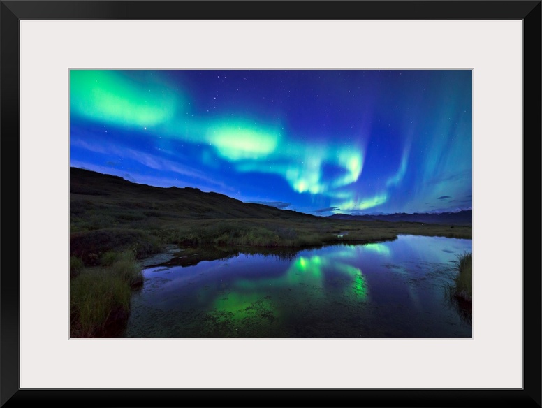 <p>Aurora borealis over a pond in Denali National Park and Preserve, Alaska.</p>