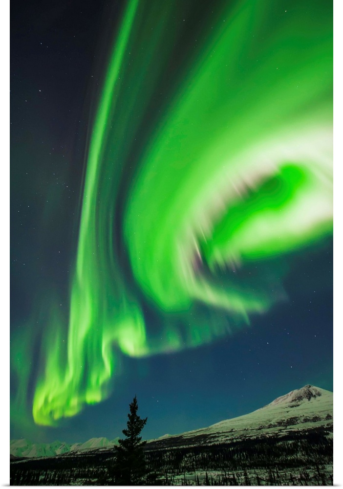 <p>Aurora borealis over trees along the Denali Highway east of Cantwell, Alaska.</p>