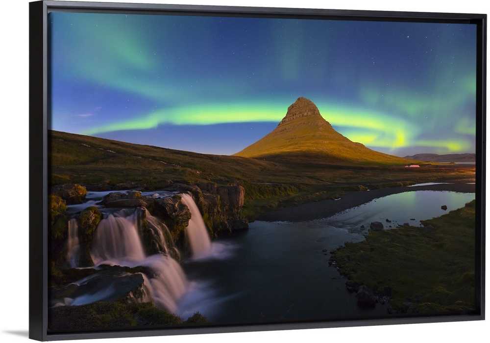 <p>Aurora (Northern Lights) over a moonlit Kirkjufell Mountain, Snaefellsnes Peninsula, Iceland, Polar Regions</p>