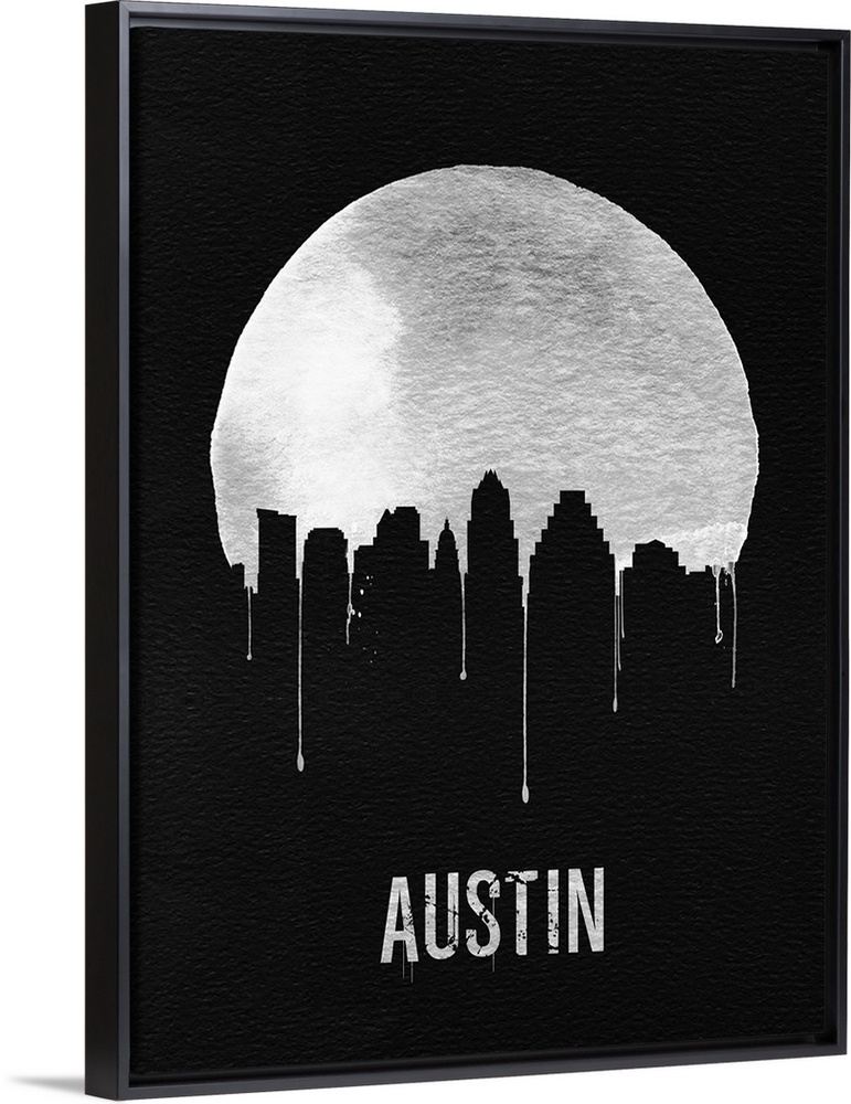 <p>Contemporary watercolor artwork of the Austin city skyline, in silhouette.</p>