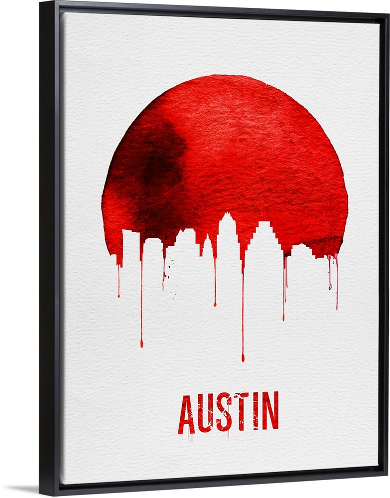 <p>Contemporary watercolor artwork of the Austin city skyline, in silhouette.</p>