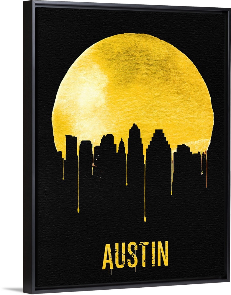 <p>Contemporary watercolor artwork of the Austin city skyline, in silhouette.</p>