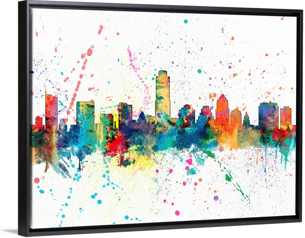 <p>Wild and vibrant paint splatter silhouette of the Austin skyline.</p>