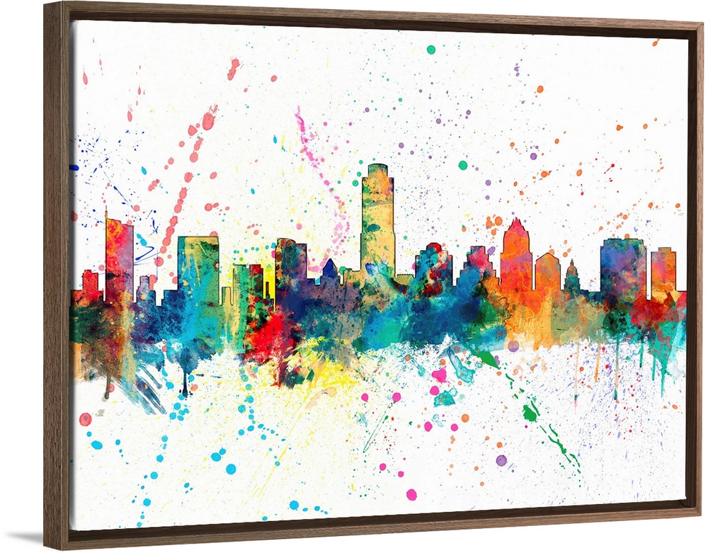 <p>Wild and vibrant paint splatter silhouette of the Austin skyline.</p>
