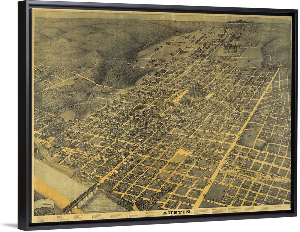 <p>Antique illustrated map of a bird's eye view of Austin, Texas from 1887.</p>