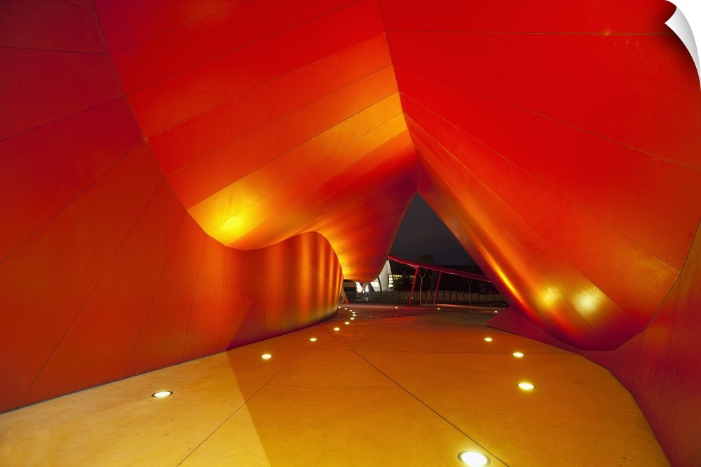 <p>Australia, Australian Capital Territory (ACT), Canberra. Entrance to the National Museum of Australia illuminated at night.</p>
