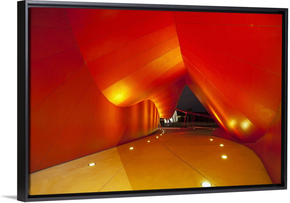 <p>Australia, Australian Capital Territory (ACT), Canberra. Entrance to the National Museum of Australia illuminated at night.</p>