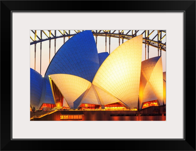 <p>Australia, New South Wales, Sydney, Oceania, Sydney Opera House, Sydney Harbor Bridge, Opera House and Harbor bridge by night.</p>